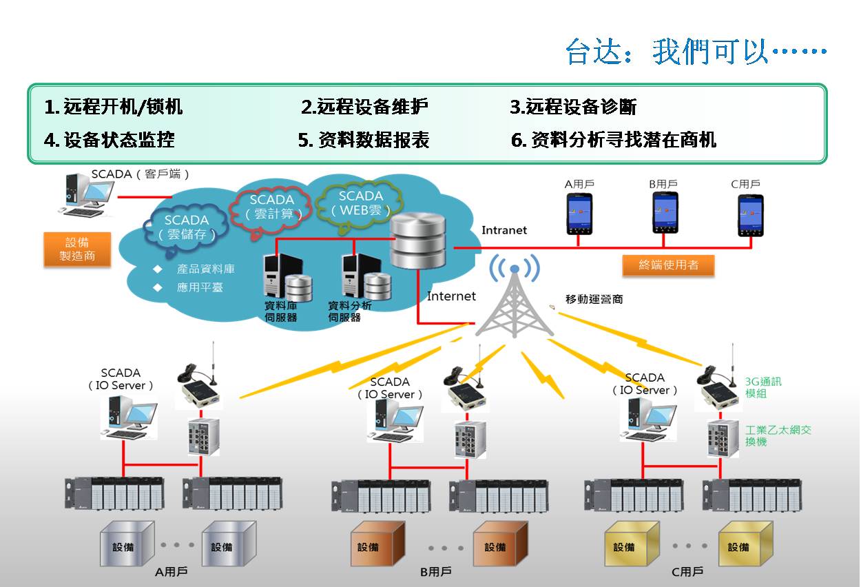 臺(tái)達(dá)工業(yè)自動(dòng)化云端以及物聯(lián)網(wǎng)解決方案。遠(yuǎn)程維保,遠(yuǎn)程監(jiān)控,構(gòu)建智慧工業(yè)!