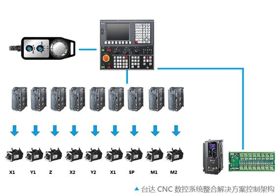該新型無心磨床的一大特色就是采用了雙機械手自動送料系統(tǒng),因此,客戶要求磨削加工和自動送料可以同時動作,以求提高效率、縮短加工時間,這樣就需要通過雙通道控制系統(tǒng)來實現,但成本很高。而在臺達的整合解決方案中,ASDA-A2系列伺服驅動器本身具有強大的PR功能(內部位置編程模式),可以提供高達64點內部地址,可規(guī)劃多樣多點連續(xù)運動路徑,同時可以和上位控制器CNC進行友善便捷地通訊。在此功能模式下,雙機械手可以完成送料的各種動作,操作人員也可以設置機械手的各位置參數。利用A2系列伺服驅動器的PR功能模式,客戶通過單通道控制系統(tǒng)就可以滿足設備運動控制需求,大大降低了系統(tǒng)建構成本?! ?br/>臺達CNC數控系統(tǒng)整合解決方案的優(yōu)勢: