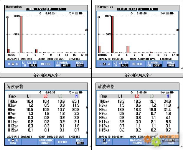 測試地點為1#變380V低壓總進線開關(guān)側(cè):
