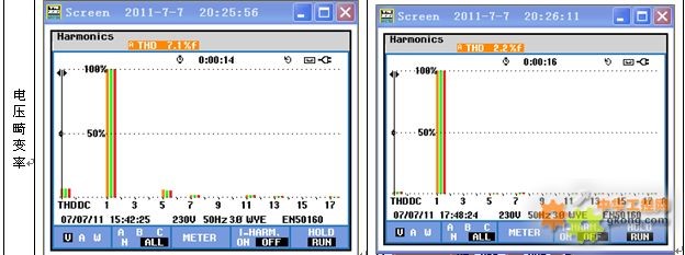 網(wǎng)側(cè)波形從嚴(yán)重畸變恢復(fù)成正弦波波形。