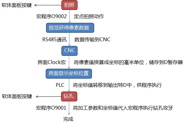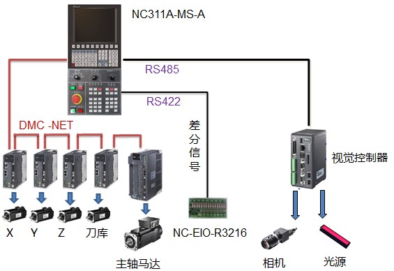 圖2 臺(tái)達(dá)CNC+機(jī)器視覺綜合解決方案控制原理圖