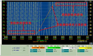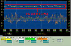 根據(jù)PID算法模型,高速運行時,收線放線伺服輸出偏差正負(fù)5轉(zhuǎn)以及張力擺動扭矩正負(fù)1牛。同時監(jiān)視主軸、張力、放線伺服的波形如下圖。其中,主軸波形圖如圖9所示。