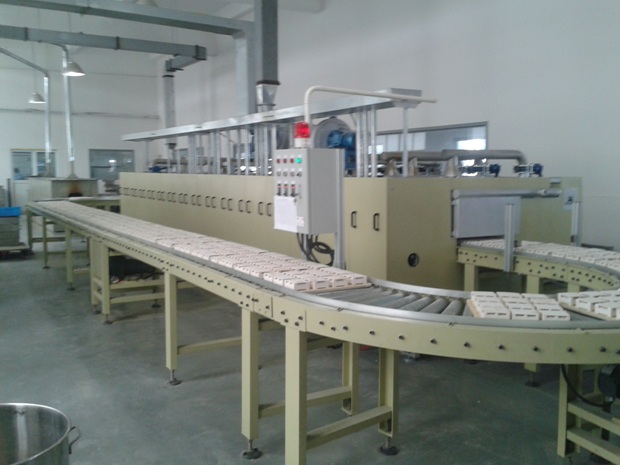 4) 加熱爐輸送線將瓷坯送入隧道式加熱爐;