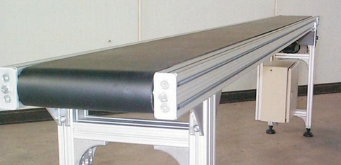 出料輸送線其主要功能是將三坐標(biāo)取料機(jī)械手取下來(lái)的工件輸送到人工卸料檢測(cè)位,以便人工取件檢測(cè)。其主要由減速電機(jī)、傳輸帶、帶輪及鋁型材框架等構(gòu)成。其總體設(shè)有調(diào)速功能,能滿足不同工件、不同出料速的需求。參考圖片如下: