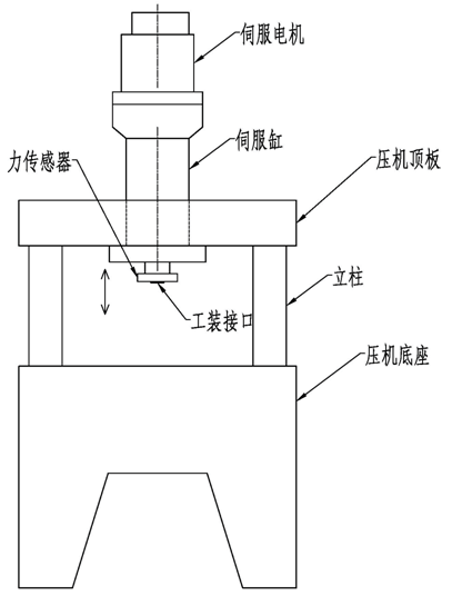 1. 伺服壓機(jī)由壓機(jī)底座、立柱、壓機(jī)頂板、伺服電缸、伺服電機(jī)、伺服驅(qū)動、力傳感器、觸摸屏、PLC、光幕、低壓元器件及控制柜等組成。位移值通過伺服電機(jī)及伺服缸精確控制,擠壓過程中的阻力由力傳感器直接檢測;通過力、位移值的采集,以及外部固有參數(shù)(工裝號、粉末重量等)的輸入,可以實時反應(yīng)力、位移及密度三者的對應(yīng)變化曲線。此外壓機(jī)設(shè)置有光幕,以確保實驗過程中人員的安全。