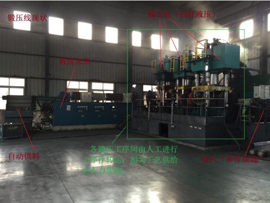 進入鍛壓線后由人工進行各鍛壓工序件的轉(zhuǎn)運直至進入“零件保溫”設(shè)備;