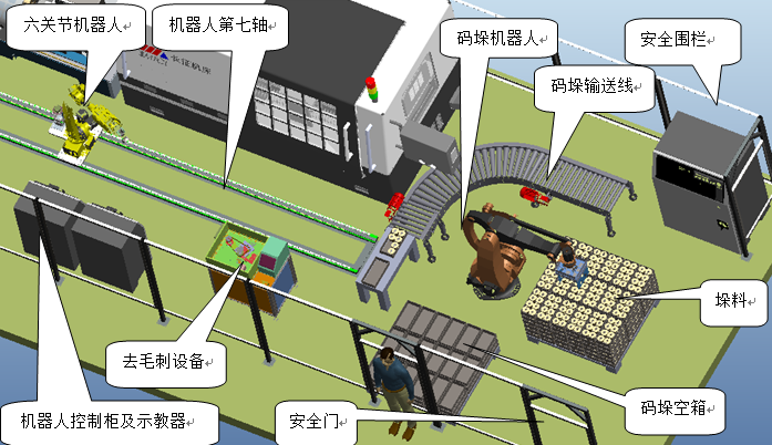 ? 教學(xué)生全面掌握機(jī)器人在機(jī)床上下料、工件去毛刺、碼垛領(lǐng)域的實(shí)際應(yīng)用。