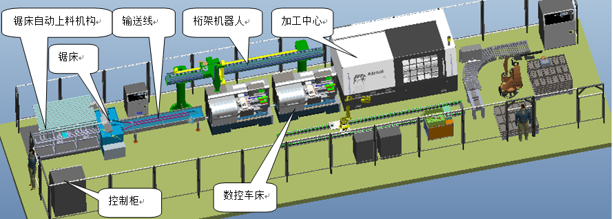 ? 通過(guò)以聯(lián)軸器的生產(chǎn)為目標(biāo),以機(jī)器人為主,輔以鋸床、車床、加工中心、機(jī)械手等輔助設(shè)備組建全自動(dòng)化教學(xué)用生產(chǎn)線;