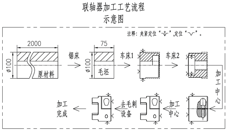 ? 以此聯(lián)軸器從來(lái)料-毛坯-加工-去毛刺-裝箱的生產(chǎn)工藝為全自動(dòng)化生產(chǎn)線的完成目標(biāo)。