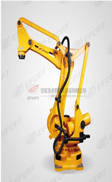 本系統(tǒng)選用efort六軸工業(yè)機(jī)器人,荷重20kg,工作半徑R1722mm,包括機(jī)器人本體、機(jī)器人控制柜、示教盒及供電電纜等。