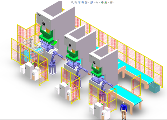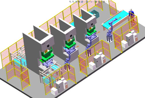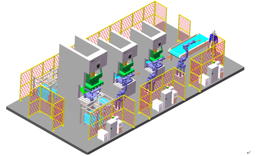 (5) 整個沖壓過程,機器人只對工件進行下料和上料,便完成所有沖壓工序。