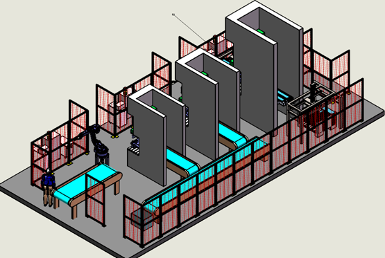 安全圍墻/安全圍欄防止人員非正常闖入工業(yè)機器人沖壓單元。