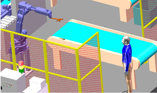 安全圍墻/安全圍欄設有安全門,當人員無故進入時,工業(yè)機器人自動停止工作。