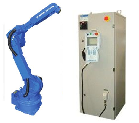 本系統(tǒng)選用YASKAWA六軸機器人,荷重6kg以上,工作半徑R1441mm以上,包括機器人本體、機器人控制柜、示教盒及供電電纜。