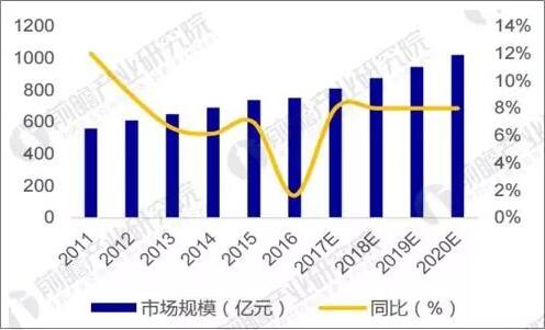 據(jù)前瞻產(chǎn)業(yè)研究院發(fā)布的《低壓電器行業(yè)產(chǎn)銷需求與投資預(yù)測(cè)分析報(bào)告》數(shù)據(jù)顯示,截止2016年底,低壓電器市場(chǎng)規(guī)模達(dá)到750億元。2017年低壓電器市場(chǎng)規(guī)模預(yù)計(jì)在810億元左右,同比增長(zhǎng)8%。低壓電器產(chǎn)品需求受各行業(yè)投資驅(qū)動(dòng),但與固定資產(chǎn)投資相關(guān)。受固定資產(chǎn)投資回暖,及下游發(fā)電、工業(yè)、房地產(chǎn)等市場(chǎng)高速增長(zhǎng)驅(qū)動(dòng),預(yù)計(jì)低壓電器行業(yè)產(chǎn)值在2018-2020年將維持8%左右的增速。
