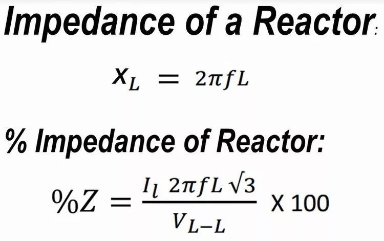 通過電抗器的電壓降與線電壓之比,稱為電抗率,以此表征電抗器的參數(shù)。電抗器的阻抗(impedance)和電抗率(% impedance of a reactor)如圖2公式,典型的電抗率是3%或者5%。