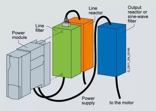 電抗器裝在變頻器和電機之間,稱為負載電抗器(load reactor)或輸出電抗器,以保護電機,如圖4所示。