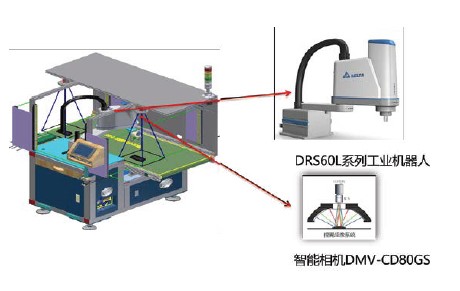 臺(tái)達(dá)解決方案包括SCARA工業(yè)機(jī)器人DRS60L系列、PLC、HMI、智能相機(jī)等,其中,SCARA工業(yè)機(jī)器人DRS60L系列主要用于追蹤點(diǎn)膠機(jī)并進(jìn)行點(diǎn)膠作業(yè)。由于機(jī)器人的靈活性,該解決方案還實(shí)現(xiàn)了快速換線且不需要夾具輔助即可完成作業(yè)的功能。