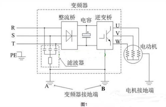 有的現(xiàn)場使用變頻器控制電機,會出漏電問題,漏電電壓有幾十伏到二百伏電壓不等。針對這個問題,在這里特對此故障產(chǎn)生的原因進行理論的分析和說明如下。