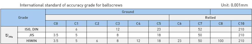 表二 滾珠絲杠國際標(biāo)準(zhǔn)精度等級(1)