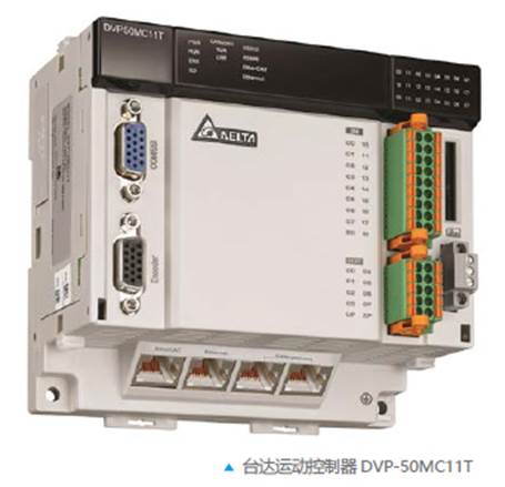 在此方案中,運(yùn)動(dòng)控制器DVP-50MC11T和伺服驅(qū)動(dòng)器ASDA-A2-E系列,充分利用EtherCAT總線協(xié)議的優(yōu)異性能,保證了每個(gè)軸之間的同步時(shí)間偏差在微秒級(jí)別,超高速回路在控制24個(gè)伺服時(shí)同步周期1ms,遠(yuǎn)遠(yuǎn)超過(guò)CANopen總線的8ms,保證了機(jī)器運(yùn)行效率。方案還實(shí)現(xiàn)了色標(biāo)修模。通過(guò)總線色標(biāo)位置抓取膜軸停止位置計(jì)算后,進(jìn)行色標(biāo)補(bǔ)償,亦可補(bǔ)償打滑等情況,精度在+1mm和-1mm以內(nèi);模組擴(kuò)充溫度控制器DTC1000采取導(dǎo)軌式安裝,既美觀又方便;DTC1000可和觸摸屏直接通信,節(jié)省開(kāi)發(fā)時(shí)間,同時(shí)也具有獨(dú)立穩(wěn)定的PID調(diào)節(jié)能力。
