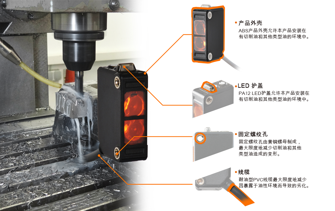 特殊噴涂,耐油型光電傳感器 (針對汽車和機床行業(yè)進(jìn)行了優(yōu)化)